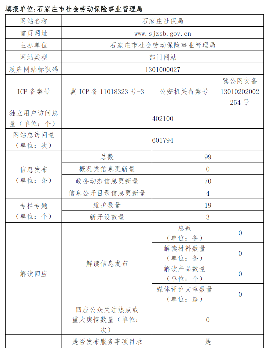2017年度石家庄社保局网站工作年度报表